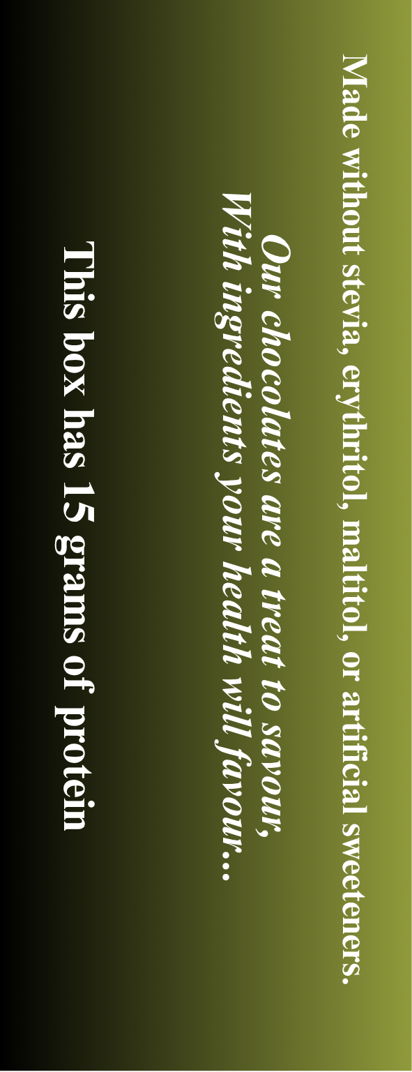 - No artificial sweeteners, no erithrytol, maltitol or sorbitol.